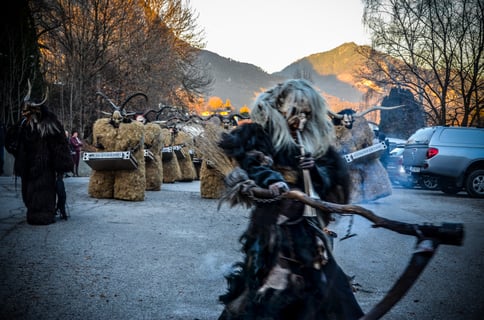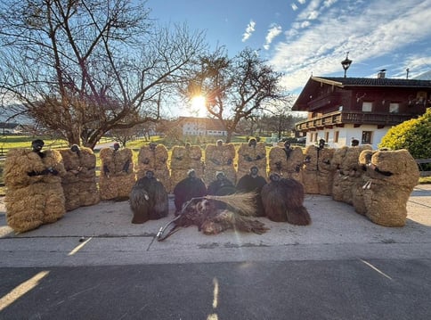 · Das Anfertigen unserer Perchten Kostüme, die mittlerweile 80kg und mehr auf die Waage bringen, beginnt bereits im Spätsommer. Die Gewänder werden aus getrockneten und gebündelten, am Nagelbrett ausgebürsteten Maiskolbenblättern gefertigt, die auf Jacken und Hosen aufgenäht werden. Vom Klauben der Maiskolbenblättern bis zum fertigen Gewand, werden unzählige Stunden Arbeit benötigt, deshalb ist es nicht verwunderlich, dass die Saison schon Mitte September beginnt.